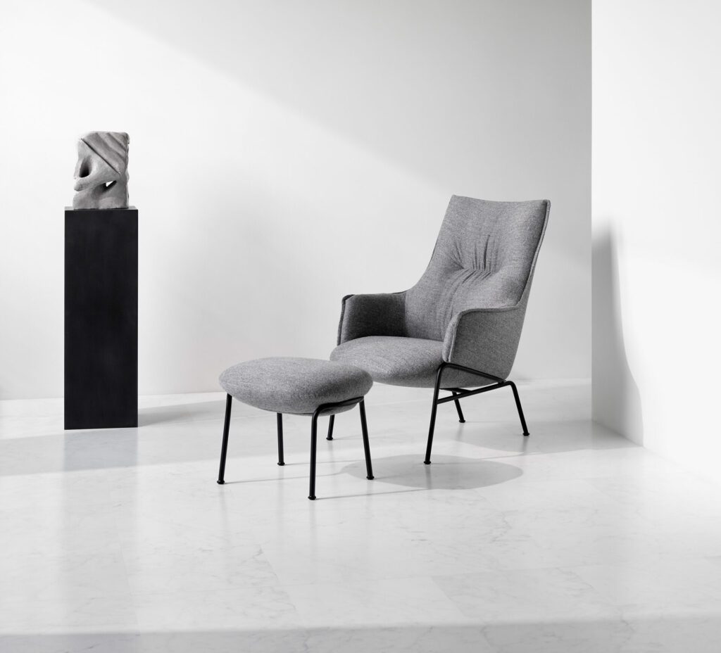 Die Sofabeine gibt es in stahl oder schwarz matt lackiert.
